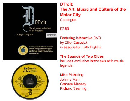 You can now order the DTroit Catalogue from the Urbis Shop which comes with a DVD of "The Sounds Of Two Cities" film by Elliot Eastwick, featuring an interview with Graham Massey. From the Urbis Shop, select 'Exhibitions', then 'DTroit', then 'Catalogue' - cost is £7.50 plus postage. Limited edition of 1,000 copies - also available at Picaddilly Records here. |
